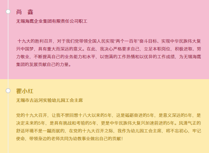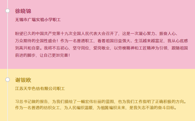 (10月18日)上午9時,中國共產黨第十九次全國代表大會在人民大會堂開幕。習近平總書記代表十八屆中央委員會向大會作報告。 ![]() 無錫各級工會紛紛組織工會干部和廣大職工觀看開幕式,喜迎十九大。 各級工會觀看實況 ![]() 無錫市總工會 ![]() 新吳區海太半導體(無錫)有限公司工會 無錫產業發展集團有限公司工會 ![]() 無錫威孚高科技集團股份有限公司工會 ![]() 中航工業航空動力控制系統研究所(614所)工會 ![]() 一汽解放汽車有限公司無錫柴油機廠工會 ![]() 無錫創業投資集團有限公司工會 ![]() 無錫地鐵集團有限公司工會 聽了習總書記振奮人心的工作報告,錫城職工燃了 ![]() 喜迎十九大,續寫新輝煌! |