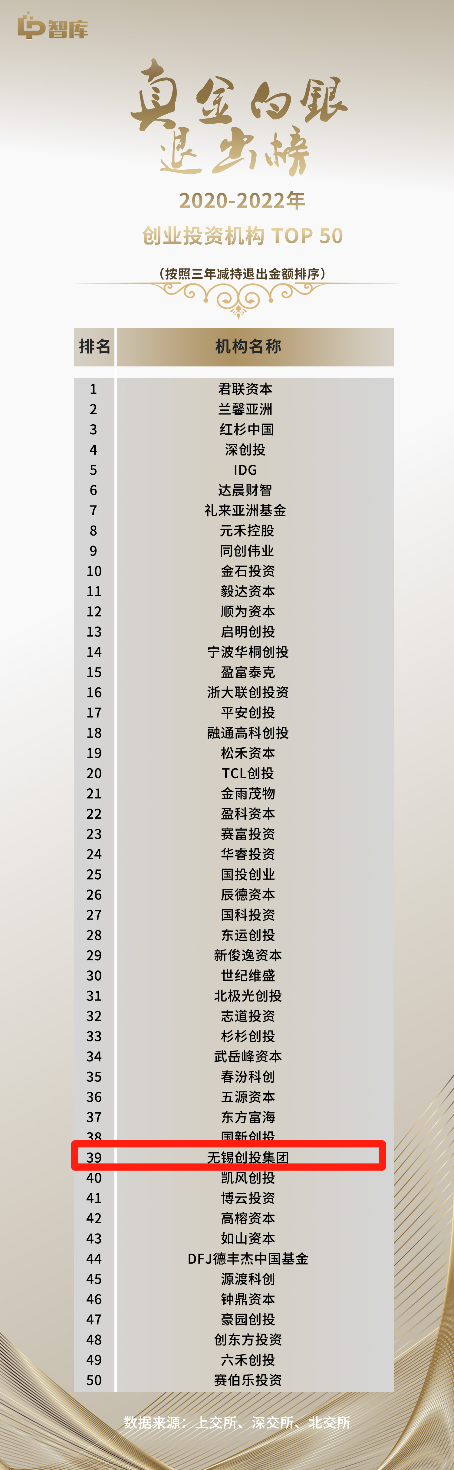 創投集團榮獲《真金白銀退出榜》2020-2022年創業投資機構TOP50榜第39名 |